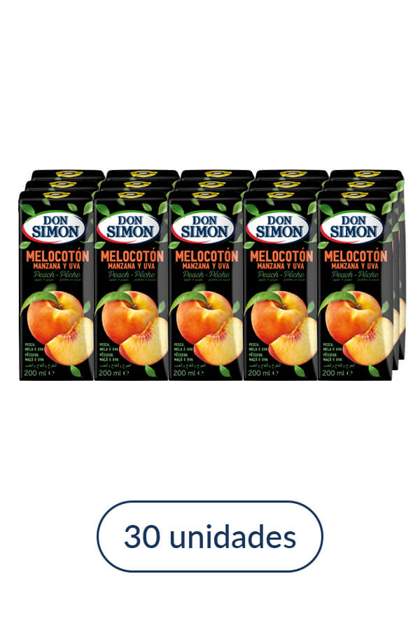 Zumo Don Simón de melocotón, manzana y uva. El clásico sin azúcar, rico en vitamina C. Los zumos Don Simón a partir de concentrado tienen todo el sabor y las propiedades nutritivas de la fruta.